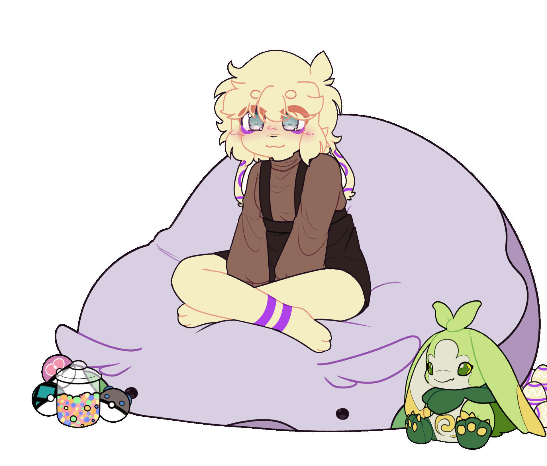 Tima is an small anthropomorphic bunny, often showcased in NSFW commissions.Tima lives on their own as a tenant of the Silver Seashore Apartment Complex. Elliot offered to give them an apartment for free under a special contract. Despite living on their own Tima does like to be looked after and taken care of, so they often hire a babysitter for themselves.Even though Tima looks like a cub, they are 671 years old, but look and act like they are 7 years old. They are an ageless being, and stop developing at a random age, for Tima this was at the age of 7 years. They usually refer to themself as 7 years old despite existing for much longer.The purple markings on Tima are able to glow whenever they feel a strong emotion, such as extremely happy, sad, pleasure, ect! The glow of those marks have a similar light strength of a glowstick!Tima has the ability to change their sex; being able to appear as a Male, Female, Futa or a Cunt Boy. The sex change happens when they are asleep for any amount of time, if Tima didn't sleep they stay the same sex. They have no control into what sex they change into, and has a chance of changing into the same sex they were already!